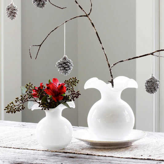 VIETRI Hibiscus Glass White Small Fluted Vase