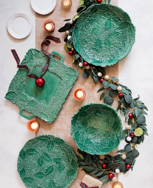 VIETRI Lastra Holiday Green Figural Shallow Bowl