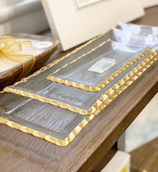 Cassiel Rectangular Tray with Jagged Gold Rim