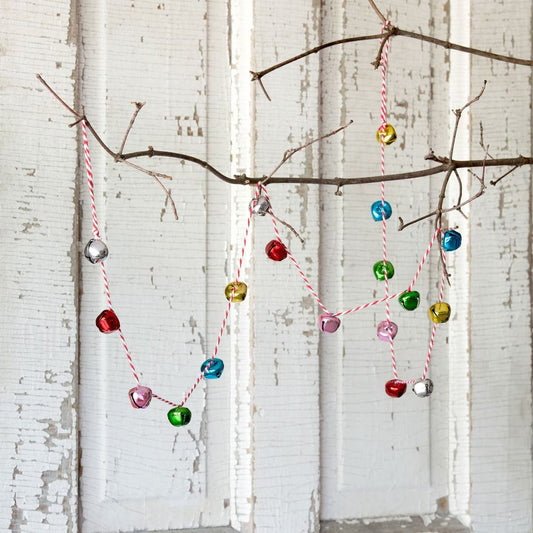 Metal Jingle Bell Garland on Jute Cord with Silver Finish