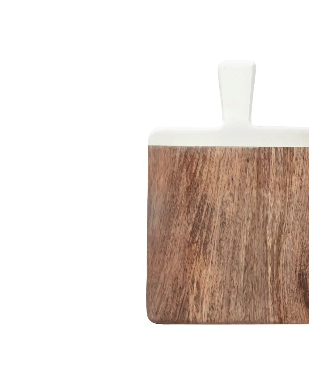 Natural variations in wood make each board unique. Hand wash. Towel-dry with soft cloth. Do not submerge in water. Not dishwasher safe. Hand sanded and finished. Kiln dried wood. Handle for convenient serving.