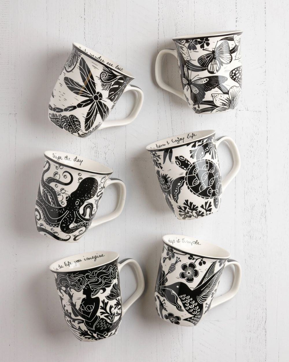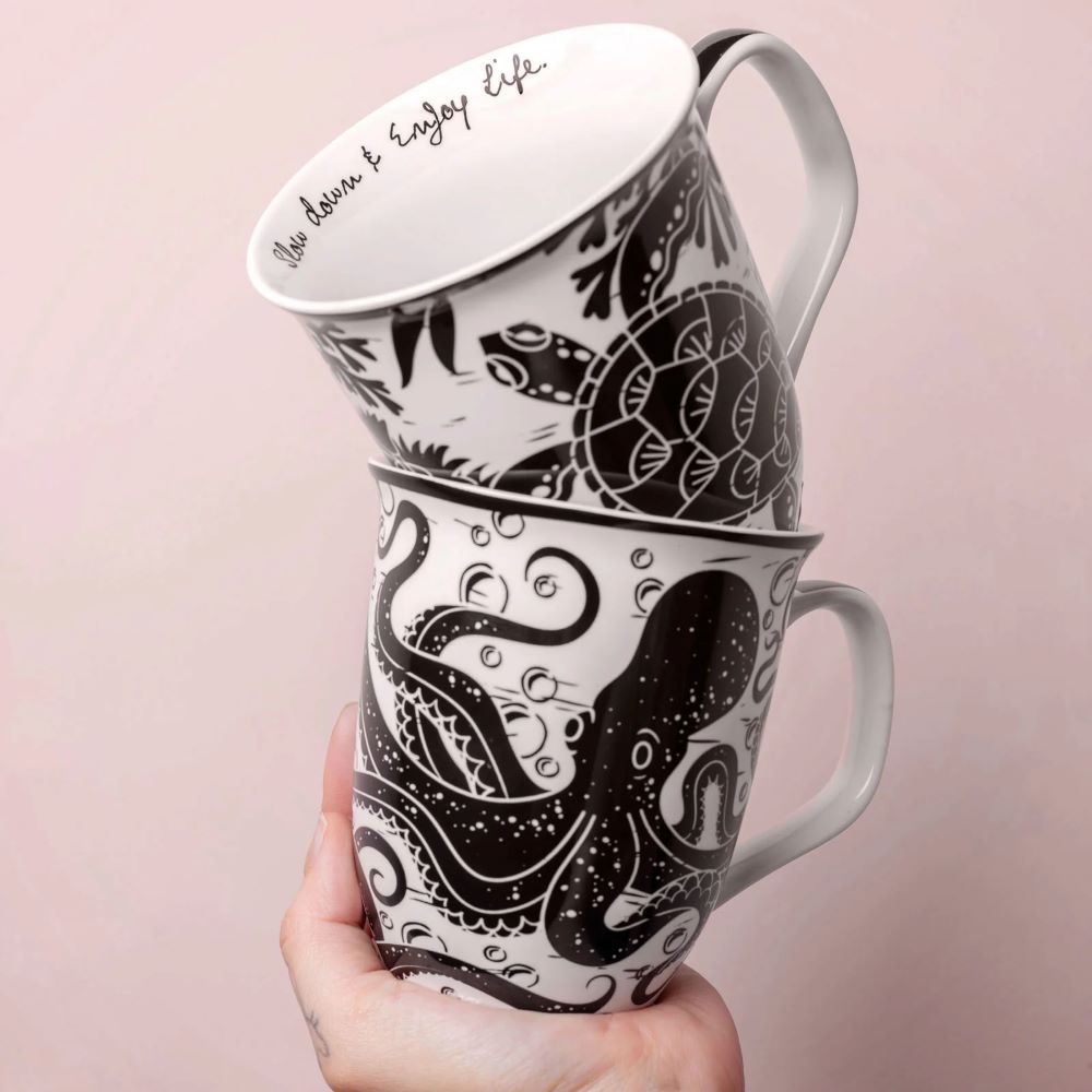 Enjoy every moment and each sip of tea with these boho black and white mugs. Uniquely illustrated and printed, these inspirational mugs are made for the bohemian in all of us, expressing ideas of love, adventure, music and artistic lifestyle.