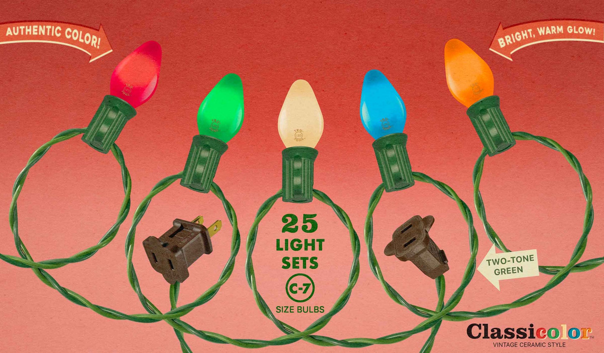 Includes ultra soft and flexible Classic Light String with twisted pair vinyl wire in Two-Tone Green for 25-light sets.