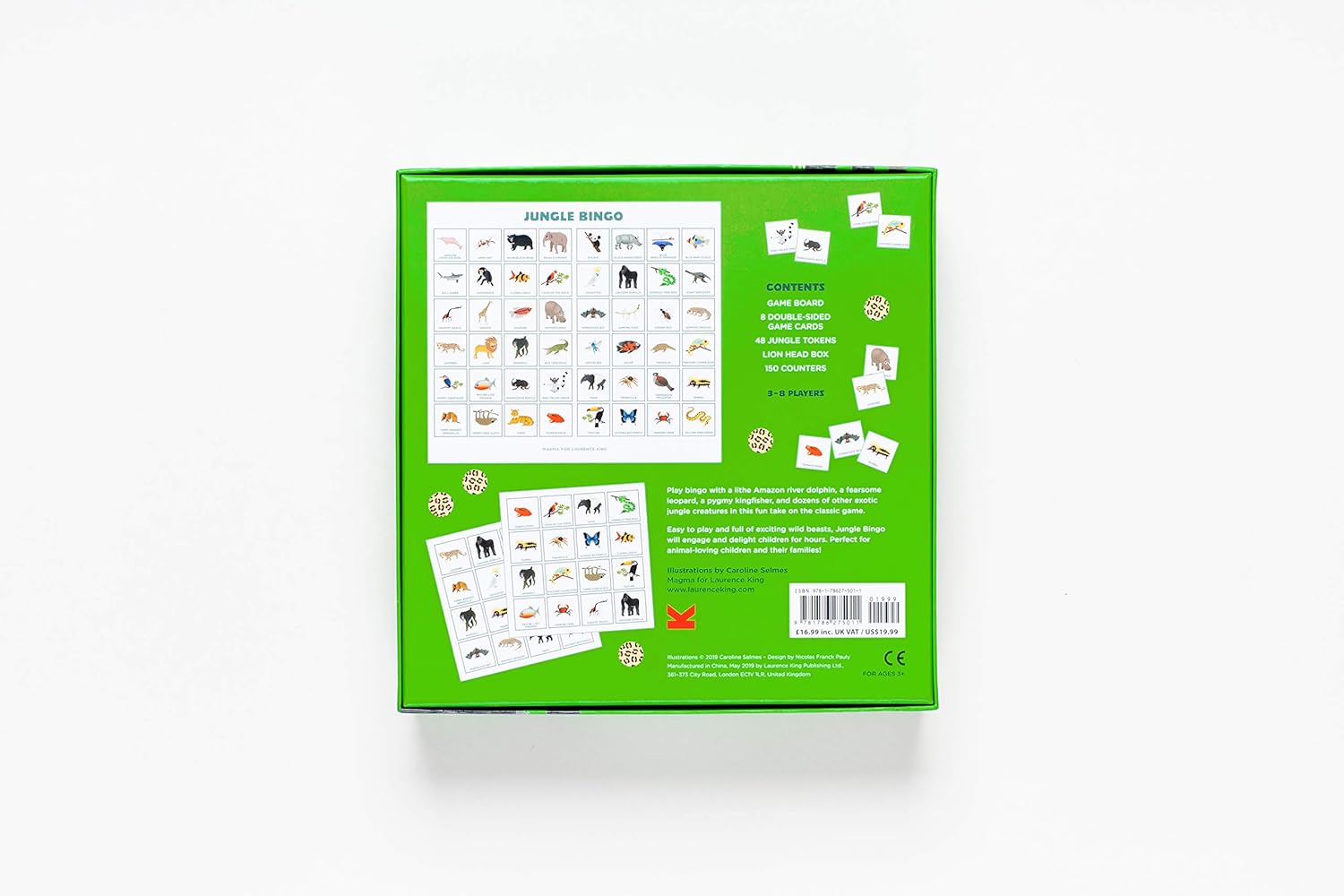 Contains 48 illustrated animal chips and a cardboard creature's head to store them in, a game board, eight double-sided bingo cards, and jungle counters for you to mark up your card.