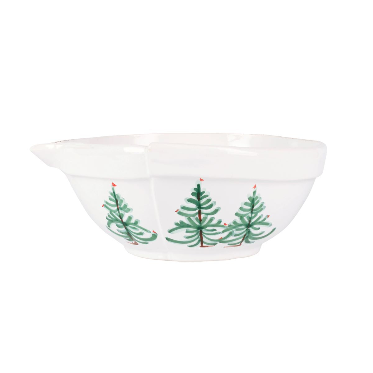 Delight in festive, irresistibly Italian magic as handpainted fir trees and bright cardinals drift across the fresh white canvas of the VIETRI Lastra Holiday Medium Mixing Bowl, bringing joyful spirit to your holiday baking. This is also a winning gift for anyone who enjoys cooking.