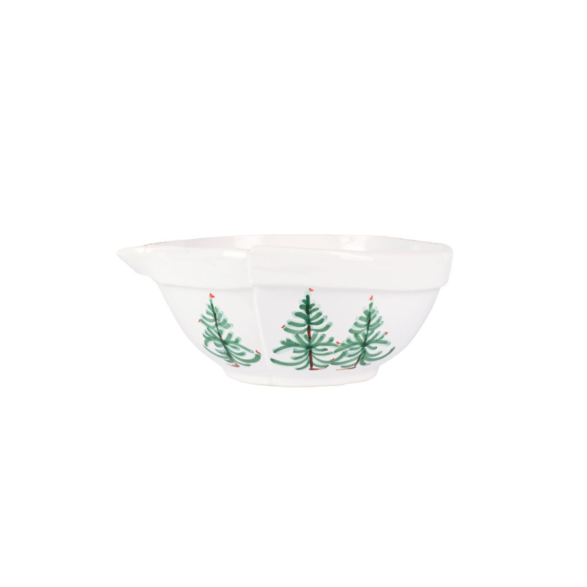 Delight in festive, irresistibly Italian magic as handpainted fir trees and bright cardinals drift across the fresh white canvas of the VIETRI Lastra Holiday Small Mixing Bowl, bringing joyful spirit to your holiday baking. This is also a winning gift for anyone who enjoys cooking.