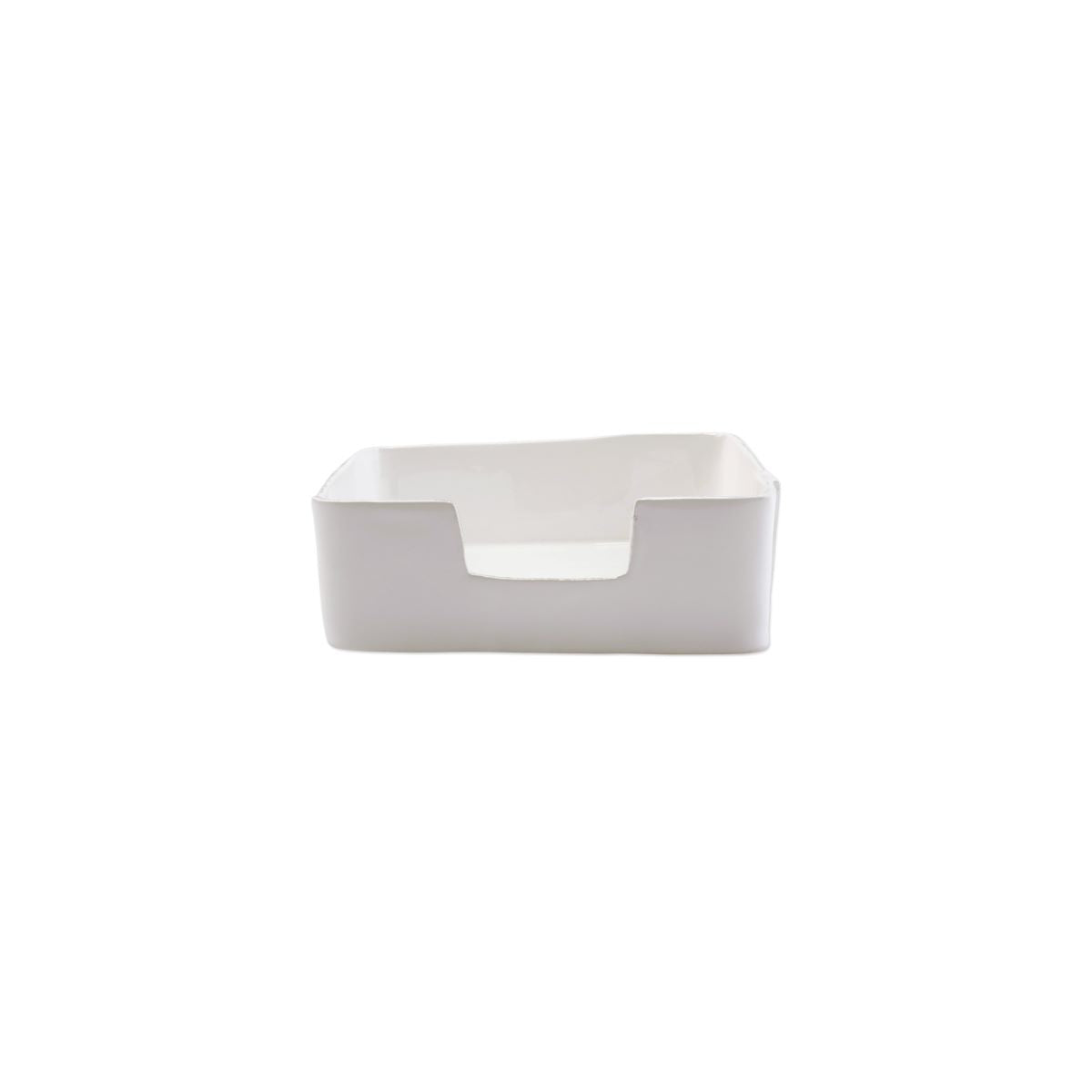 Inspired by the circular wooden slab used for centuries to create the outer mold for round wheels of Italian cheeses, the unique Lastra White Dinner Napkin Holder excites with its charming and authentically Italian appeal.