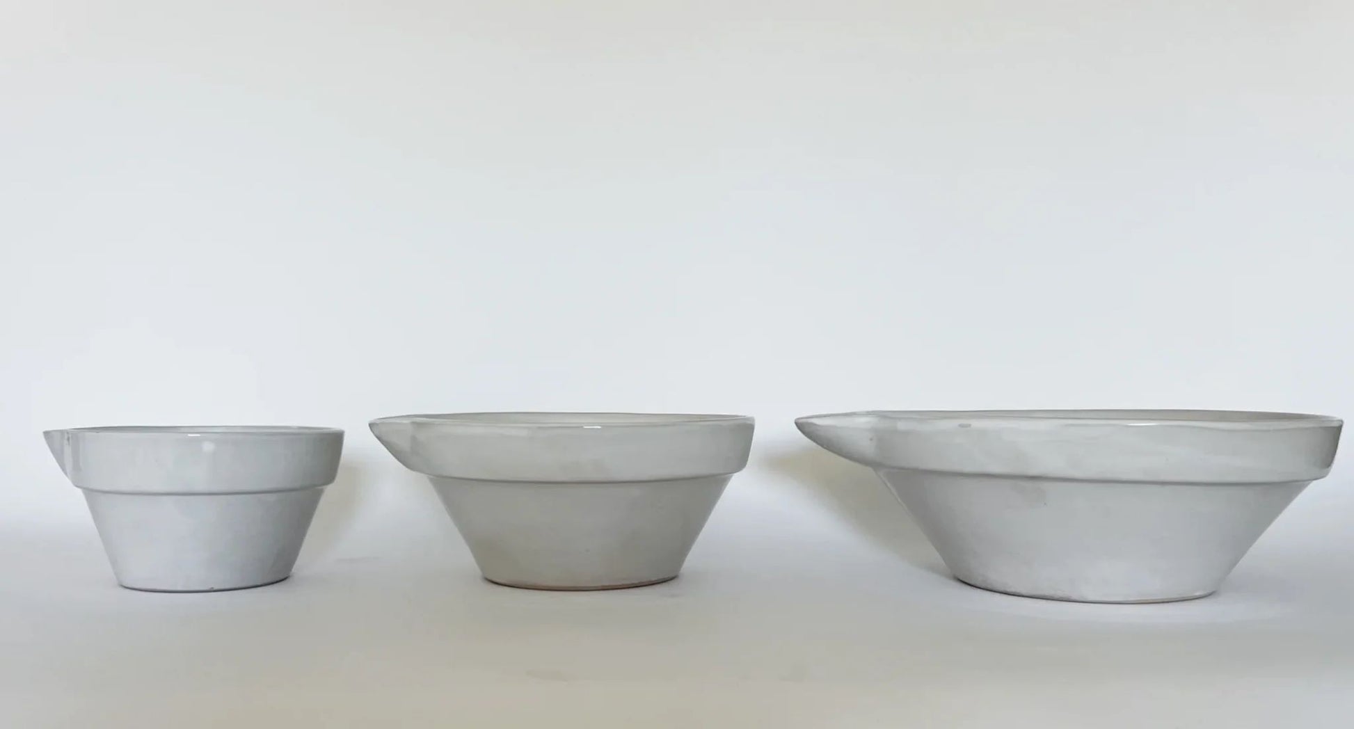 The best of American, British, and French culinary ceramics meet in this stunning series of kitchen essentials. From garlic pots to mixing bowls, this line is the perfect base around which to build your kitchen or a fabulous addition to an already well-stocked one.
