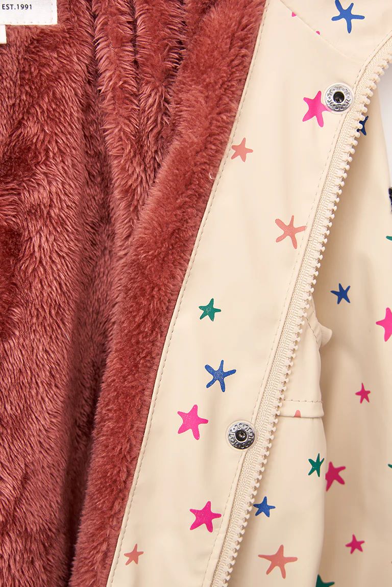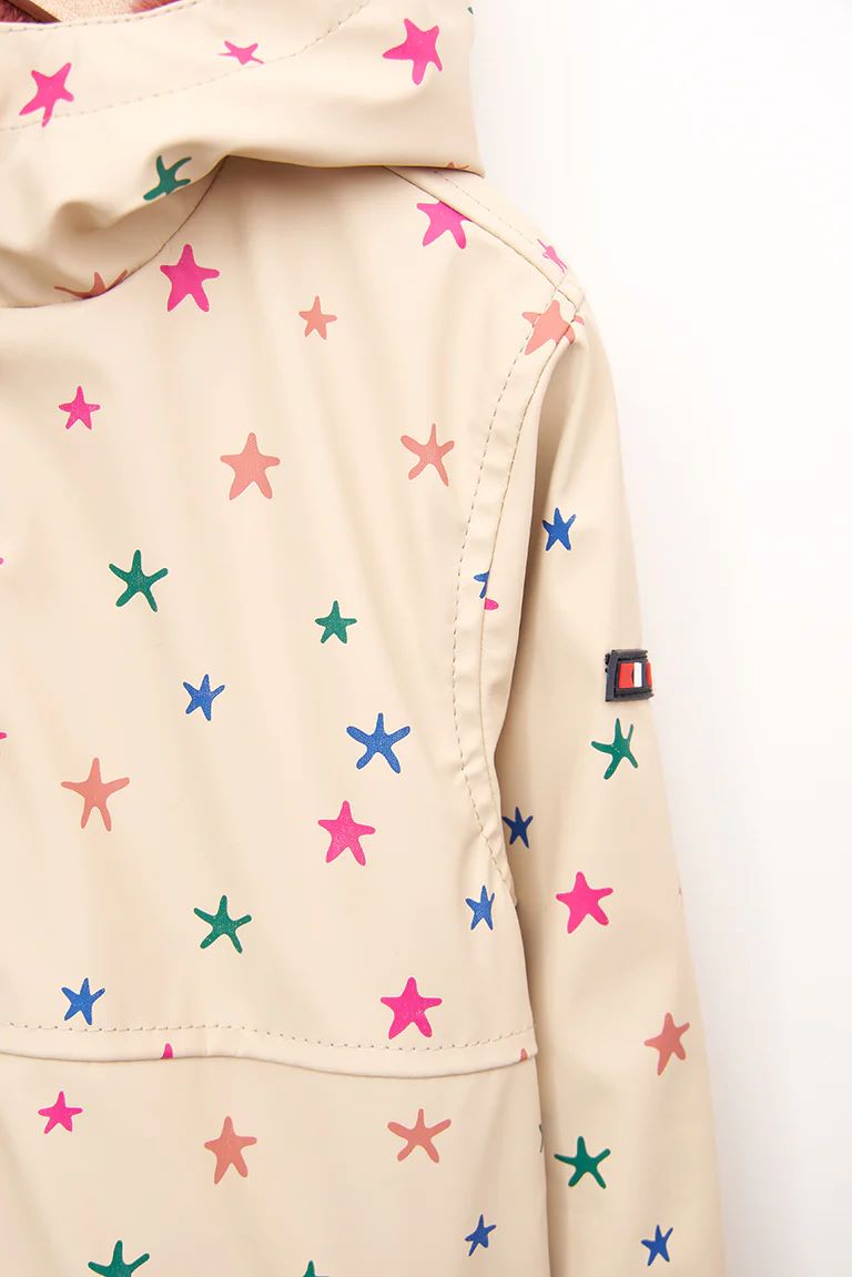 The star print adds a touch of fun and style to the garment, turning the raincoat into a charming option for the little ones.