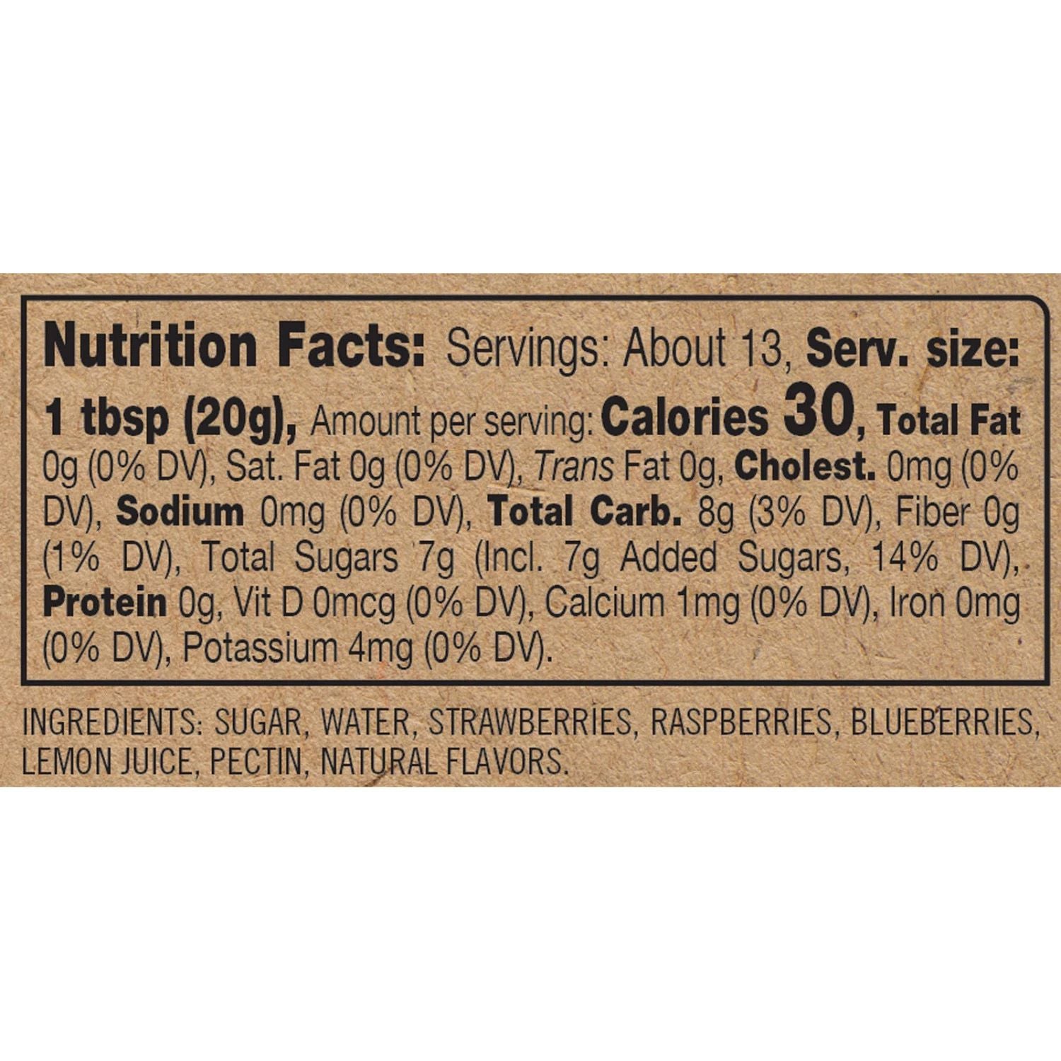 The combination of plump strawberries, sweet blueberries, and tart raspberries are a classic flavor combination in our Triple Berry Jam. Enjoy this delightful spread on your breakfast or dessert. Size: 9 oz.