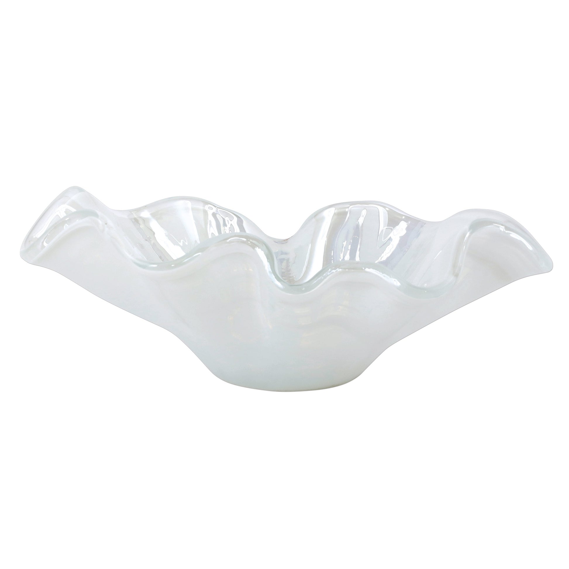 Mouthblown in Italy, the VIETRI Onda Glass White Small Bowl makes a sophisticated centerpiece on its own or filled with flowers freshly picked from your garden, or given by someone special.