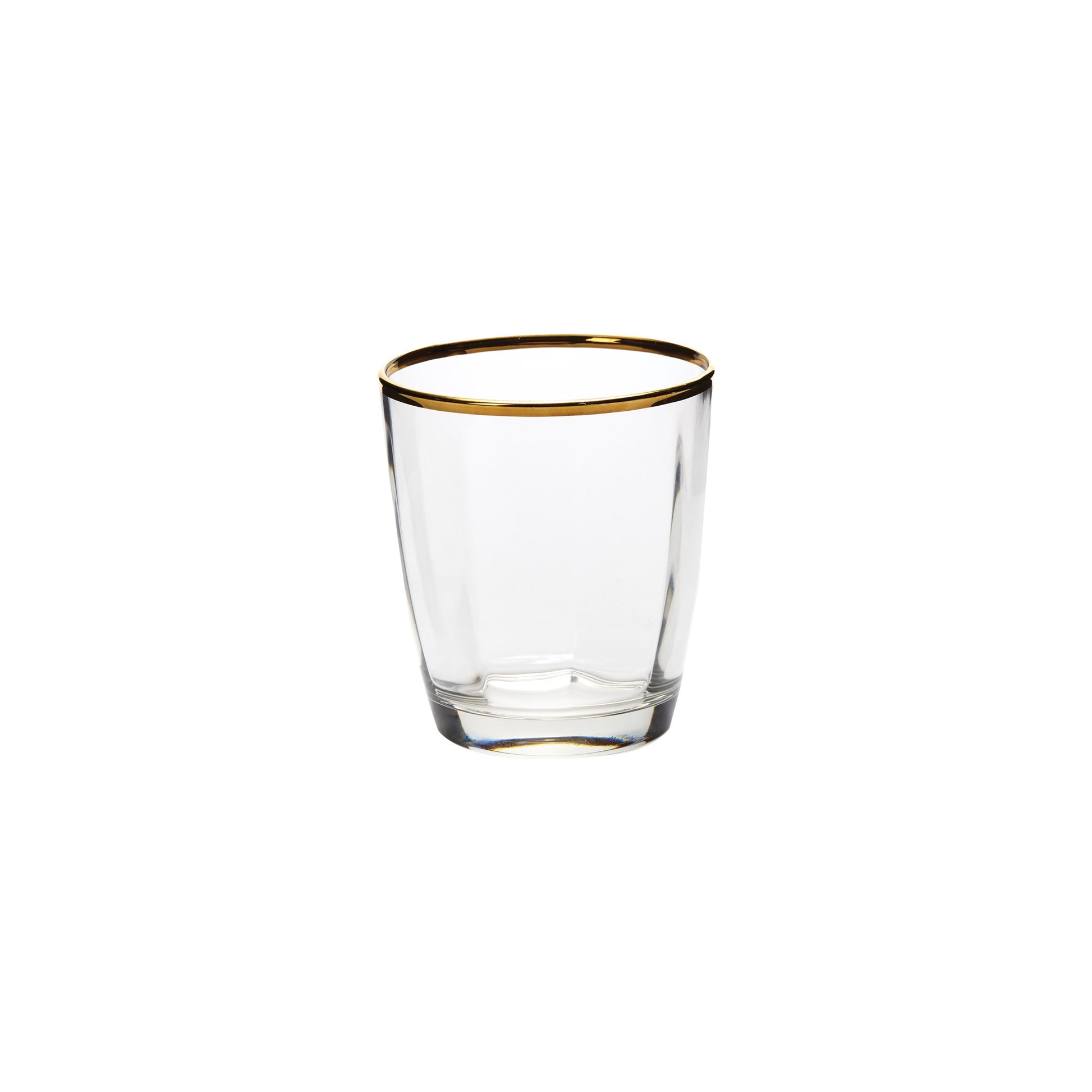 Adorn your table with the classic VIETRI Optical Gold Double Old Fashioned Glasses. The elegant lines and delicate gilded rim add effortless embellishment to any table. The classic style makes this glass a perfect gift for men and women alike.