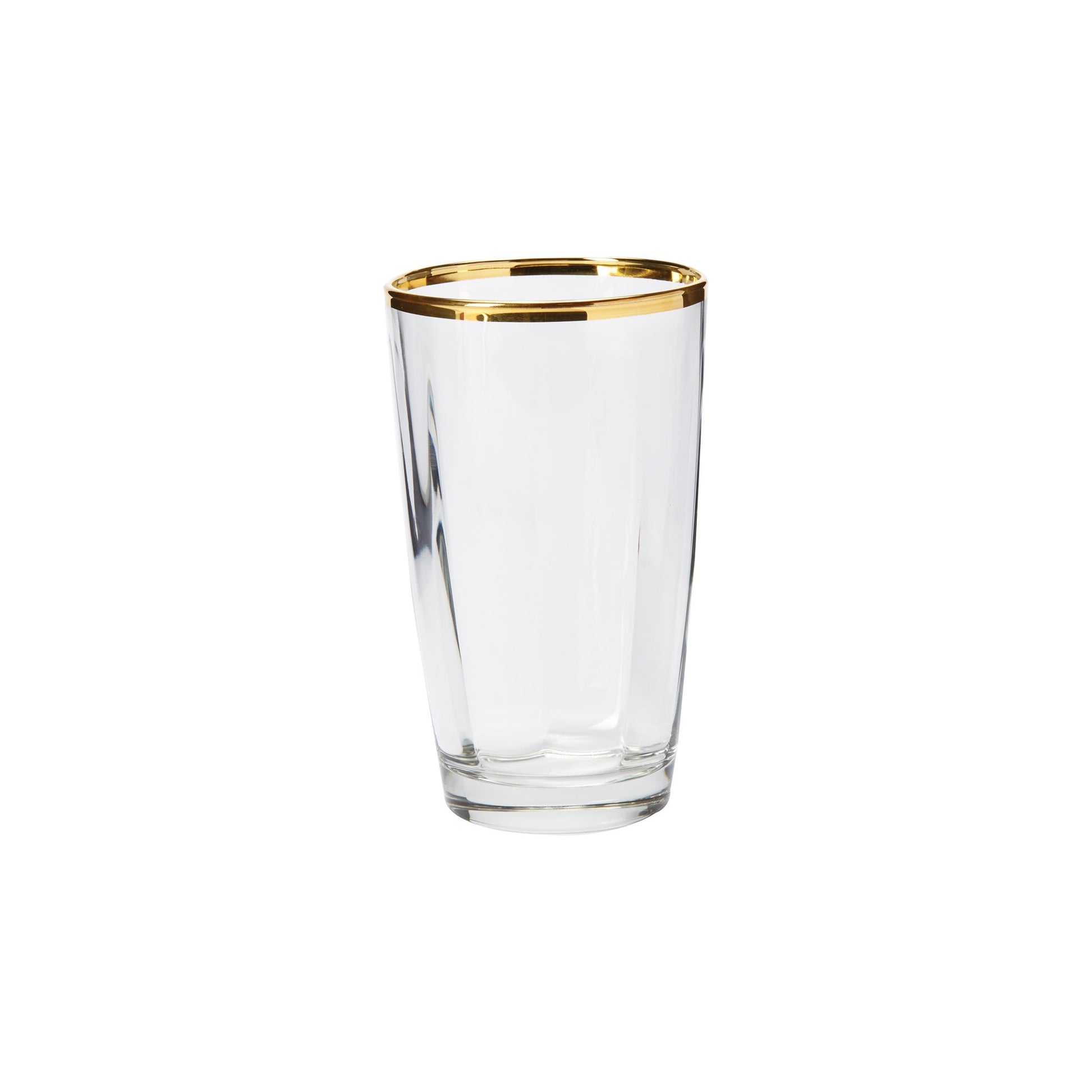 The VIETRI Optical Gold High Ball glass is a brilliant addition to your barware collection. The elegant gilded rim adds effortless sophistication to any table or bar.